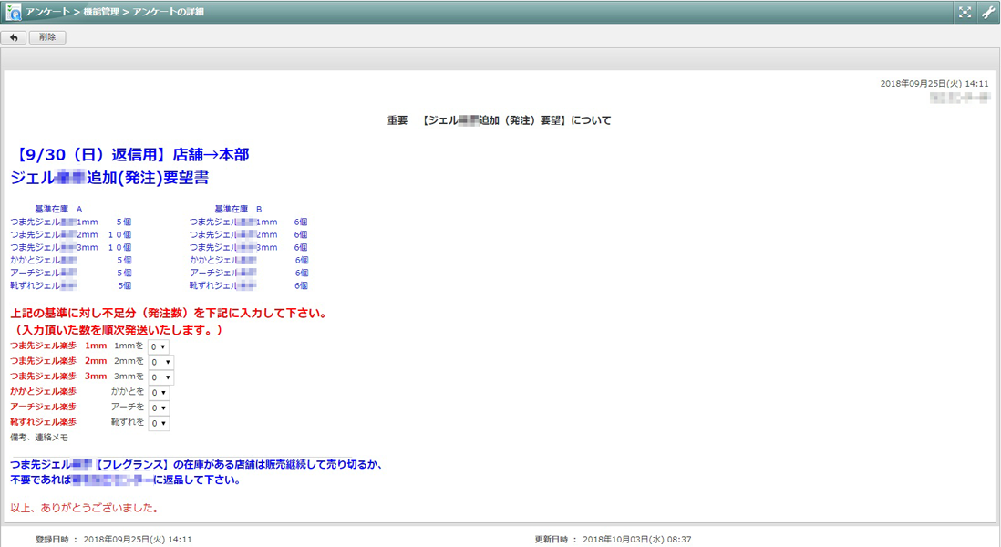 店舗の意見や意識調査等に活用。集計もしやすく、FAXの時代では考えられなかった迅速な意見集約・分析に成功。