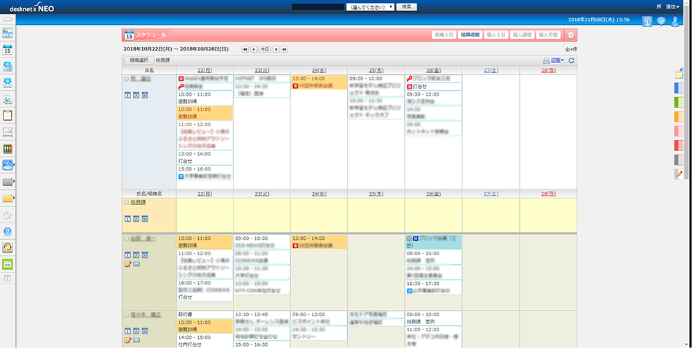 正直に言って、もう一方のグループウェアは、desknet's NEOとほぼ変わらない機能性を実現できる予測が立っていました。できないことといえば、モバイル対応、そして[スケジュール]と[設備予約]の機能連携くらいだったのです。