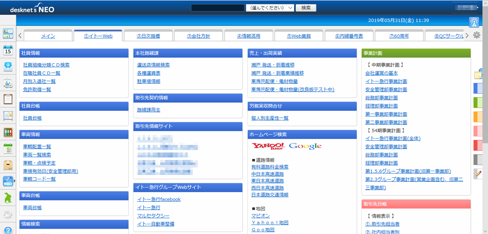 搭載機能の活用浸透と並行して基幹システムも次第にWebベースへと移行して、今ではほとんどの業務へdesknet's NEOのポータルからアクセス可能になっています。「困ったことがあれば、まずはdesknet's NEOへ」という習慣も定着しました。