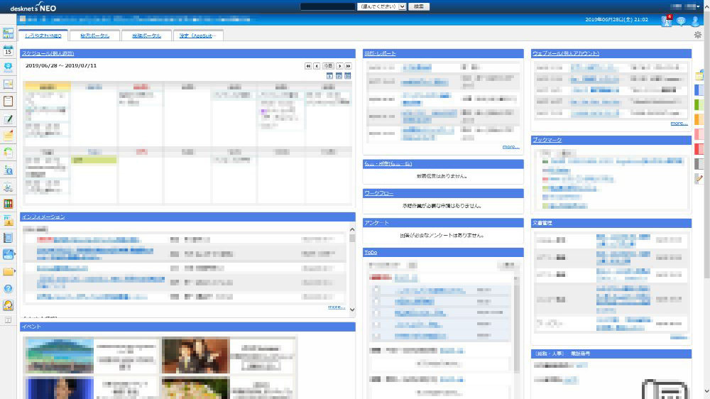 インターフェースがわかりやすく、 [スケジュール][回覧・レポート][ウェブメール][インフォメーション]など、活用の中心となる各種機能間の連携がスムーズで、必要な情報を複数の機能間で同時に活用できたところです。