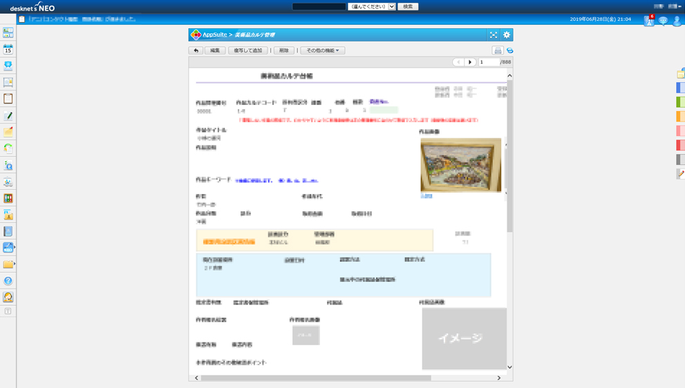 対象となったのは[顧客情報][重要文書][秘書対応業務][贈答品履歴][郵便物管理]などで、導入から3カ月の現在、他に先駆けて運用が定着しているのが[美術品カルテ管理]です。