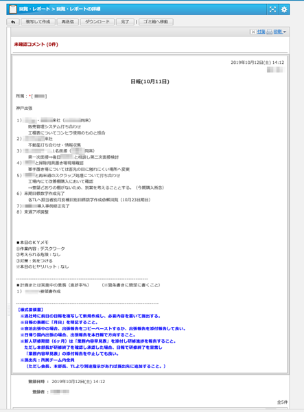 特に部門長以上の管理職に対しては、部下や部門内の日報には、閲覧だけではなく「コメントを返す」「滞留させない」ことを徹底するように意識改革を行い、現場の情報を全社の事業に活かす取り組みを推進しています。