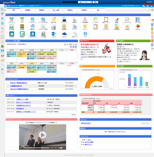個人ポータルのレイアウトを自由に設計でき、重宝しています。わたし個人のポータルにはdesknet's NEOに関するサポート最新情報を表示するようにしており、いち早くそれらをキャッチして対応できるようにしています。desknet's NEOはデザインも親しみやすく、社員にも好評です。