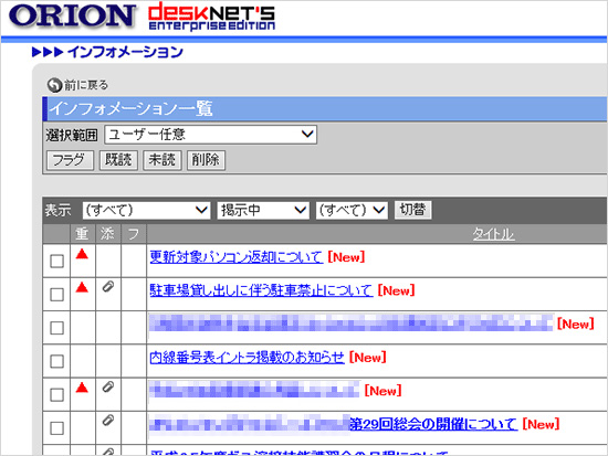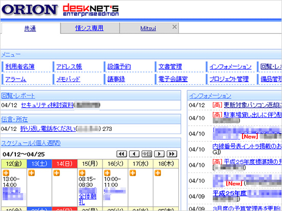 desknet'sの[インフォメーション] [回覧・レポート]の活用で、メールに集中しがちだった情報が整理されるようになりました。添付ファイルも抑制され、サーバの負荷も軽減できました。